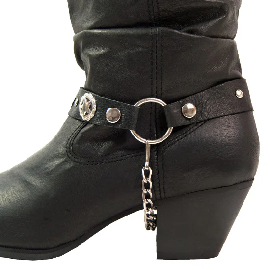 Ladies Biker-Style Pig Skin Boot• Silver Star "Badge" Style Harnesses
