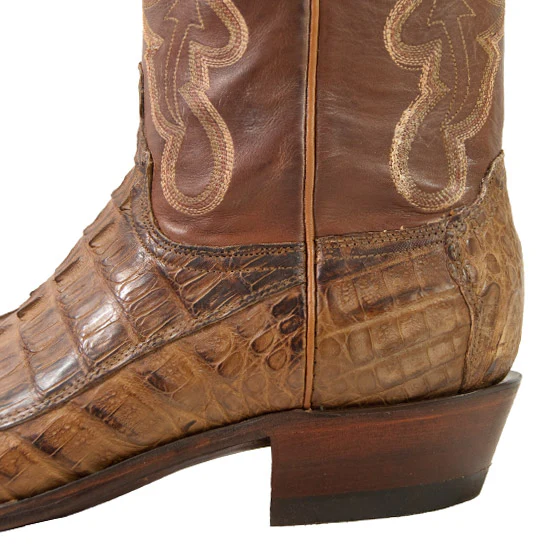 Men's Barnwood Brown Caiman Tail Cowboy Boots• Iconic Alligator Tail Leather Foot